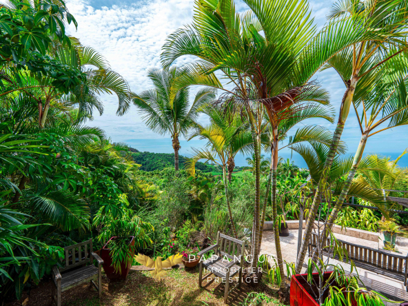 La propriété s’étend sur plus de 3 200 m2 de terrain entièrement paysager et verdoyant, véritable écrin naturel préservé. Le jardin accueille de nombreuses essences endémiques et un verger foisonnant : manguiers, litchis, avocatiers, fruits de la passion, et une grande variété d’arbres fruitiers. Un chalet indépendant déjà en place complète les extérieurs, offrant un espace additionnel à aménager selon vos envies.