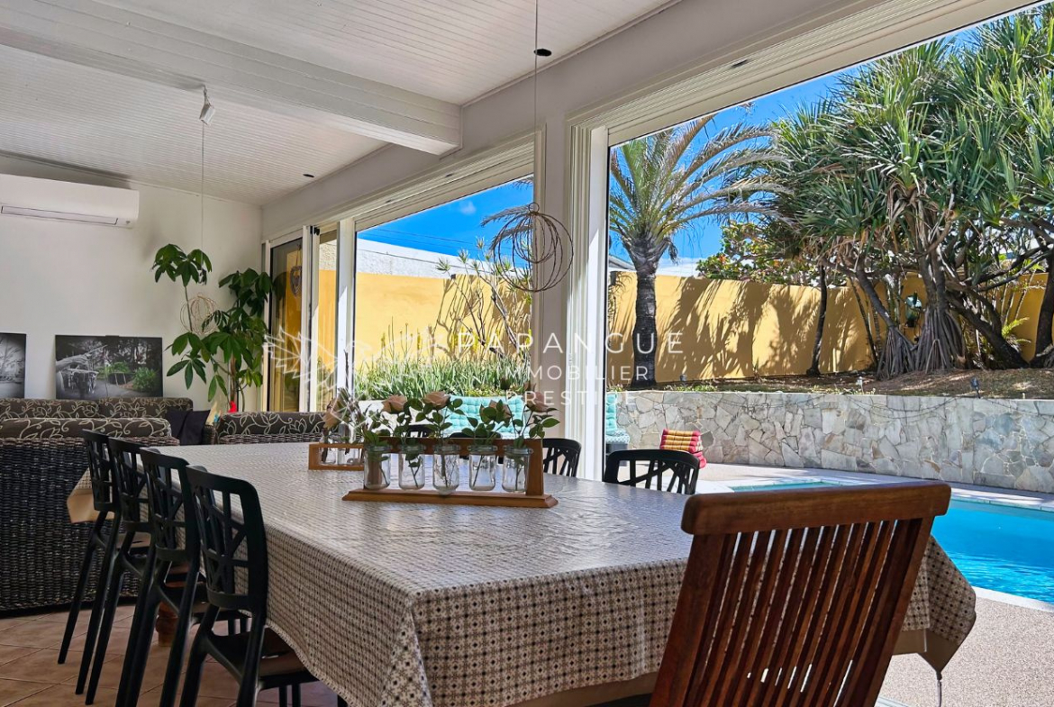 Papangue Immobilier Prestigevous présente, en exclusivité, cette élégante villa familiale située àTerre Sainte, secteur rare et prisé deSaint-Pierre.