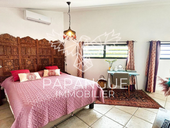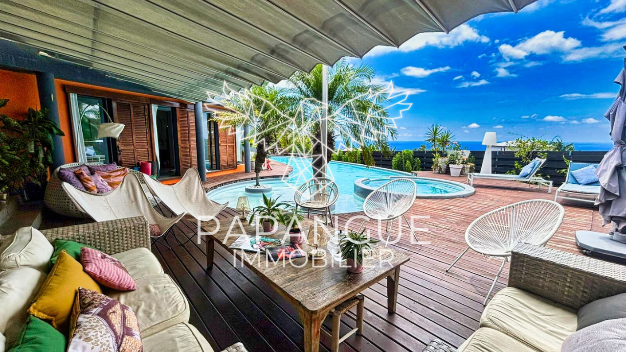 À l’extérieur, un magnifique jardin tropical vous plonge dans une atmosphère de détente absolue. Une vaste terrasse en deck s’étend autour de la piscine, offrant une vue imprenable sur La Possession et l’océan. Plusieurs espaces intimistes agrémentent l’extérieur, dont un jacuzzi et une cuisine créole, invitant à la détente et au plaisir des sens.