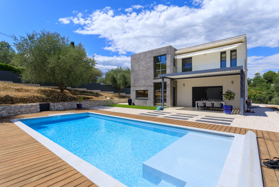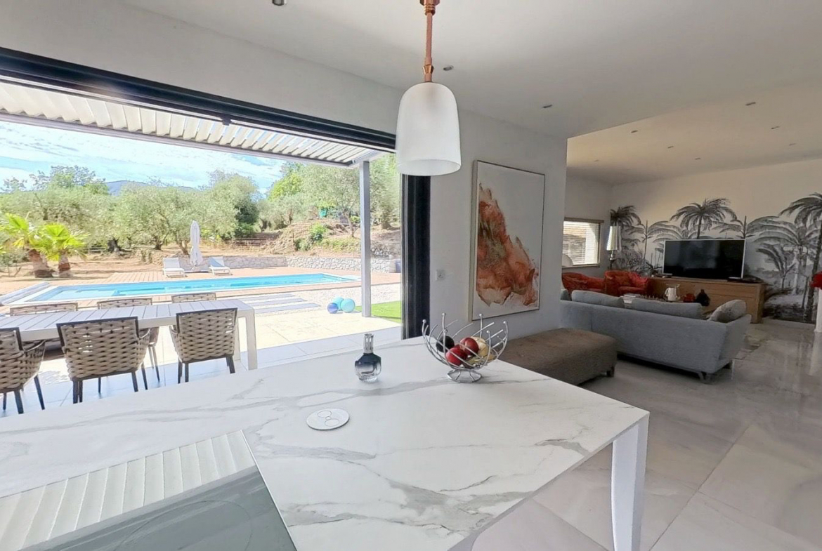 Plus qu’une maison, cette propriété incarne un art de vivre rare, où modernité et nature s’accordent pour offrir un cadre privilégié, à seulement 26 minutes de Nice.