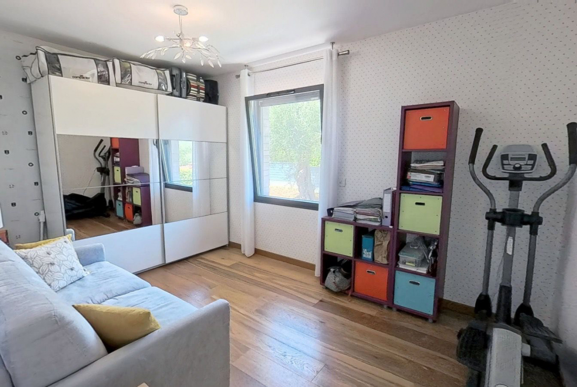 Les prestations témoignent d’un soin constant porté à la qualité : climatisation gainable, menuiseries aluminium sur mesure, stores vénitiens intégrés, diagnostics énergétiques excellents (DPE A 38 kWh/m2/an), et possibilité d’extension de 30 m2 supplémentaires (surface de plancher). L’ensemble offre un équilibre parfait entre confort contemporain, respect de l’environnement et charme provençal.