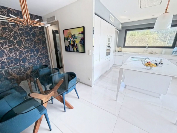 À Levens, au coeur d’un environnement verdoyant et préservé, se dévoile une villa contemporaine de 124 m2, unique dans le secteur, posée sur un vaste terrain paysager de 2 500 m2 agrémenté d’une trentaine d’oliviers. Véritable écrin de sérénité, elle séduit par son architecture moderne, ses lignes épurées et ses prestations haut de gamme, qui dialoguent harmonieusement avec la nature environnante.
