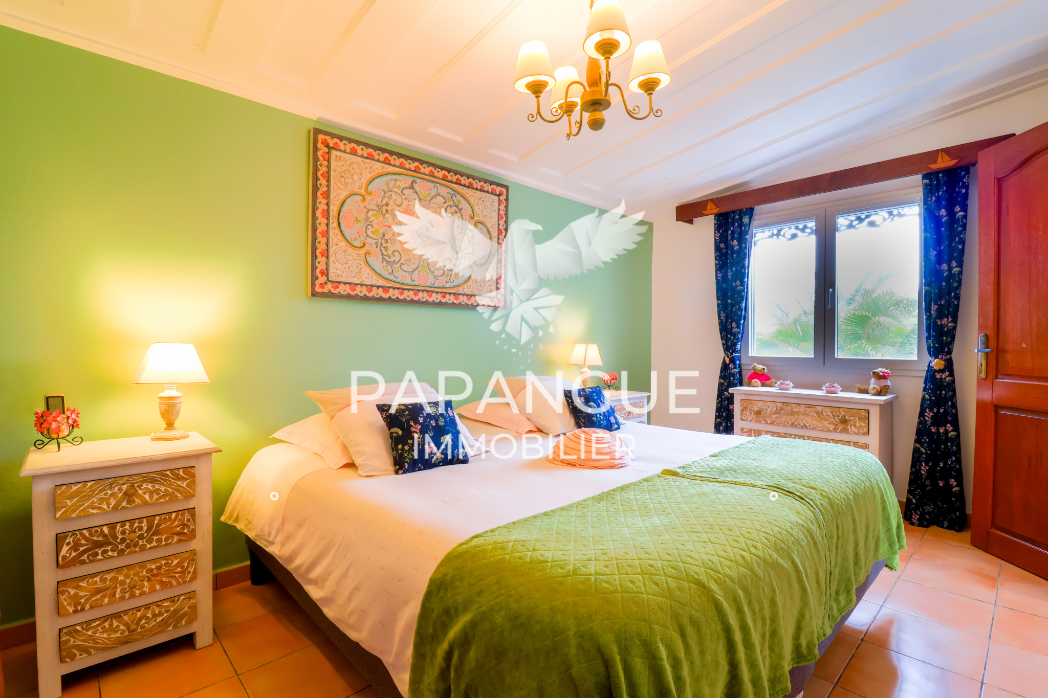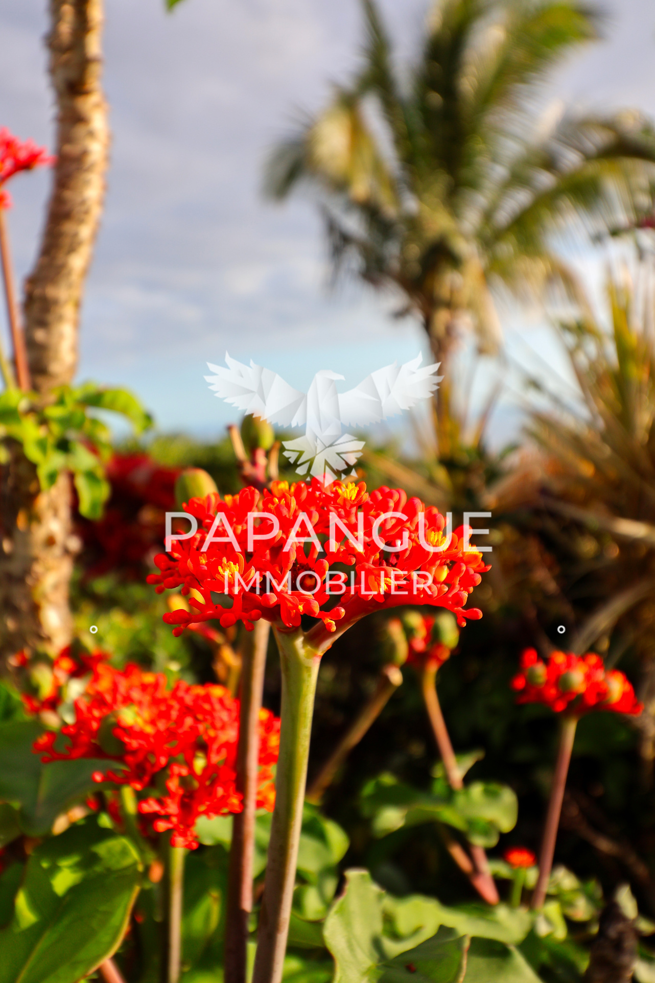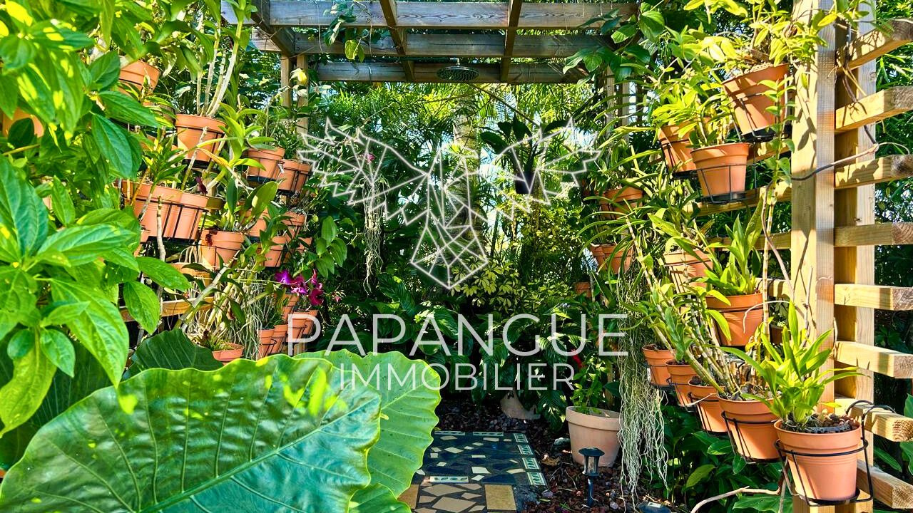 Mais le véritable trésor de cette propriété réside dans ce qui l’entoure. Le domaine abrite un jardin botanique d’exception, façonné avec passion, où s’épanouissent plus de 200 variétés de fleurs tropicales, parmi lesquelles de nombreuses espèces endémiques, rares et précieuses. Cet espace luxuriant, vivant et sensoriel, est une invitation permanente à la contemplation, un refuge poétique au coeur de l’île intense.
