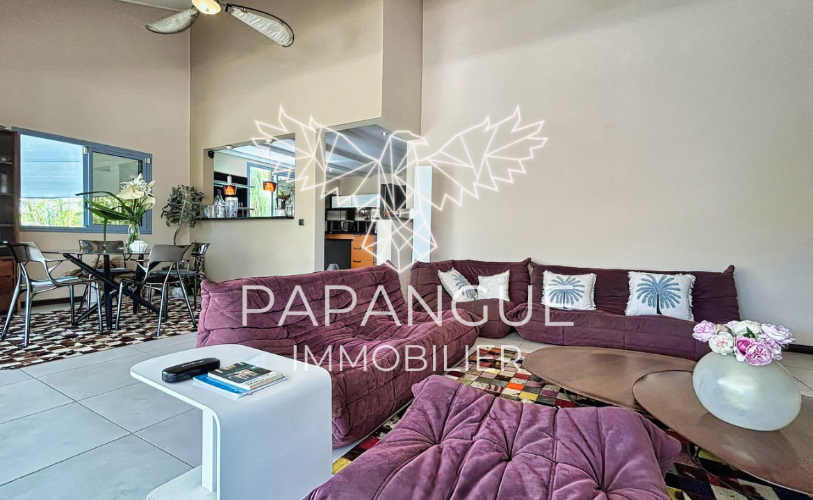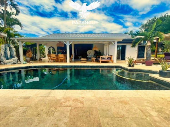 L’agence Papangue Immobilier a le privilège de vous présenter cette villa d’exception au charme créole, nichée au coeur d’un jardin tropical luxuriant.
