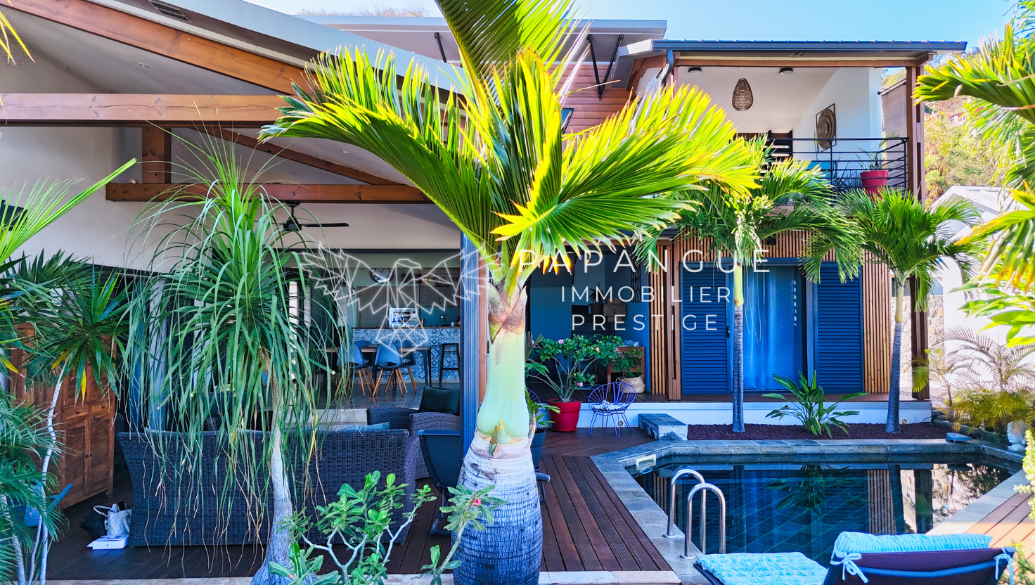 Papangue Immobilier Prestige vous présente cette villa exceptionnelle située en plein coeur du centre-ville de Saint-Leu, à moins de deux minutes du lagon, de la plage bordée de filaos et de toutes les commodités. Restaurants, commerces, activités nautiques et vie de quartier s’intègrent parfaitement à cet emplacement rare, tout en préservant une tranquillité remarquable en fond d’impasse.